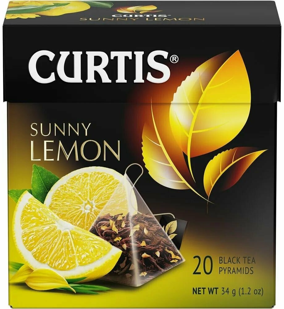 10 цен на Чай черный Curtis Sunnyс ароматом лимона цедрой цитрусовых и лепестками цветов 20 пирамидок 4 упаковки