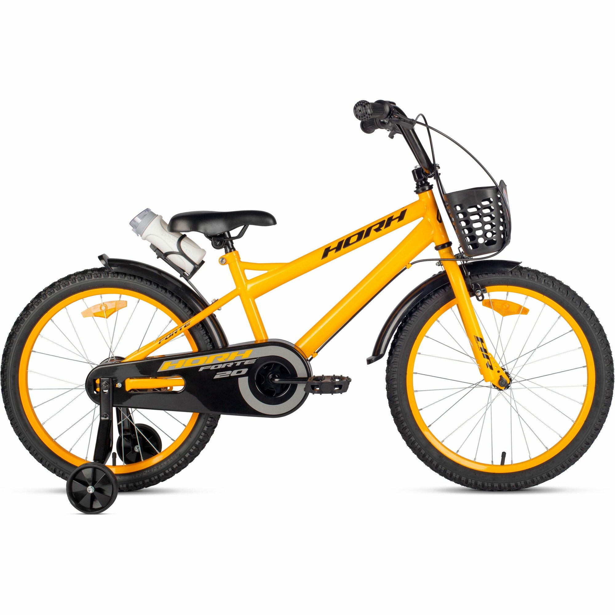 Велосипед детский городской HORH FORTE 20 2024 для детей от 6 лет до 8 лет стальная рама, с защитой цепи, звонком, флягой, корзиной, 1 ск, ободной и барабанный тормоза, черный/желтый цвет рост 120-135 15 271 ₽