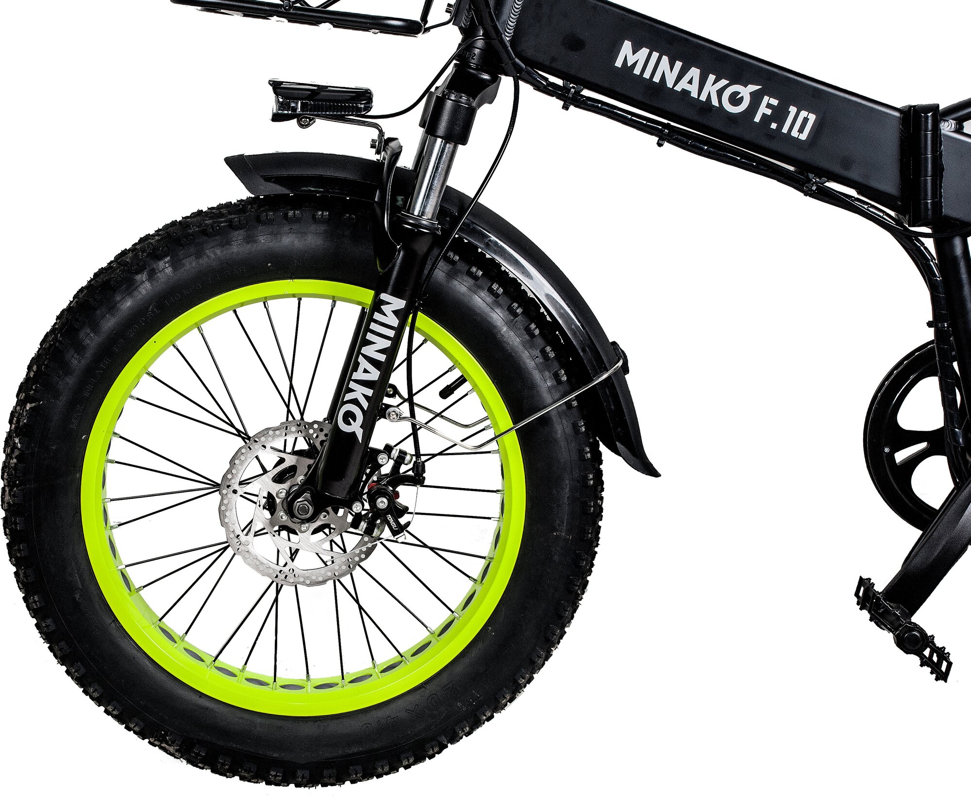 Электровелосипед Minako F10 Pro Гидравлика 2023 500W с салатовым ободом