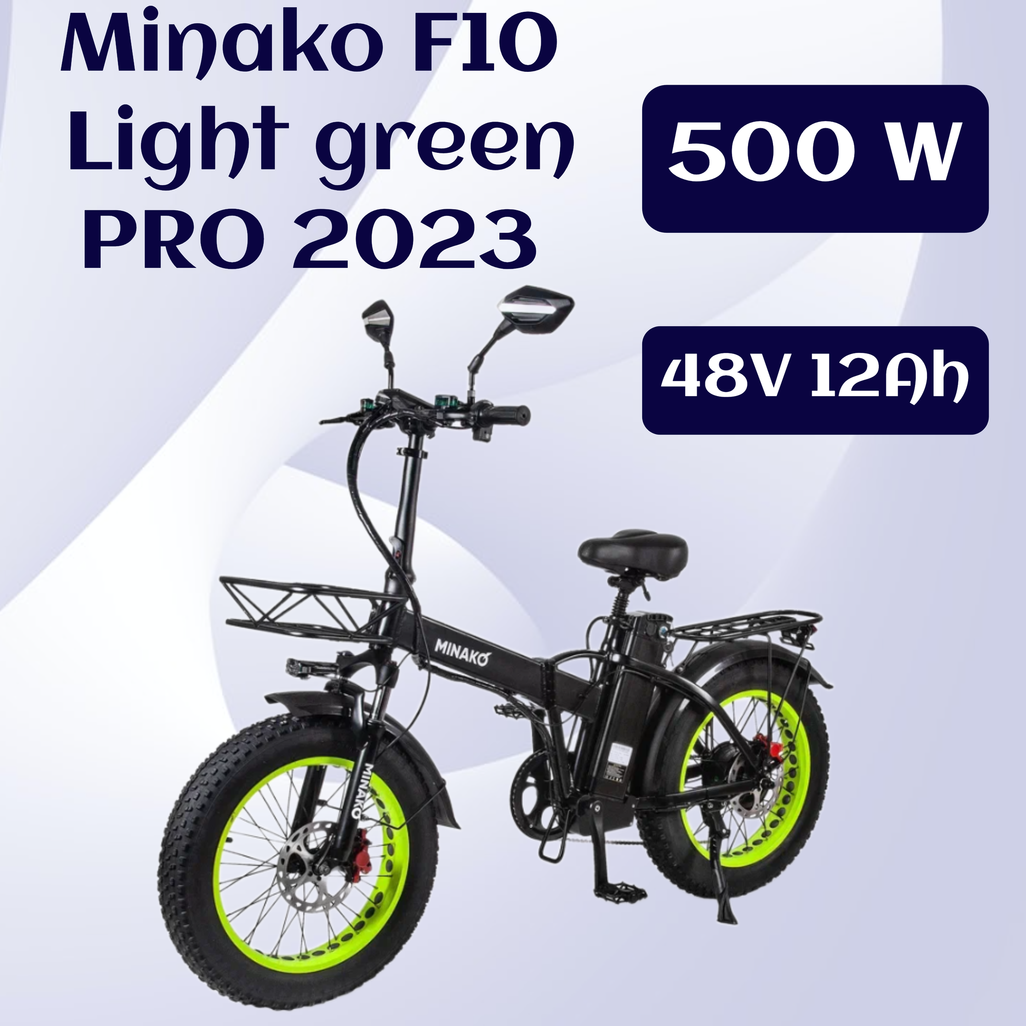 Электровелосипед Minako F10 Pro Гидравлика 2023 500W с салатовым ободом