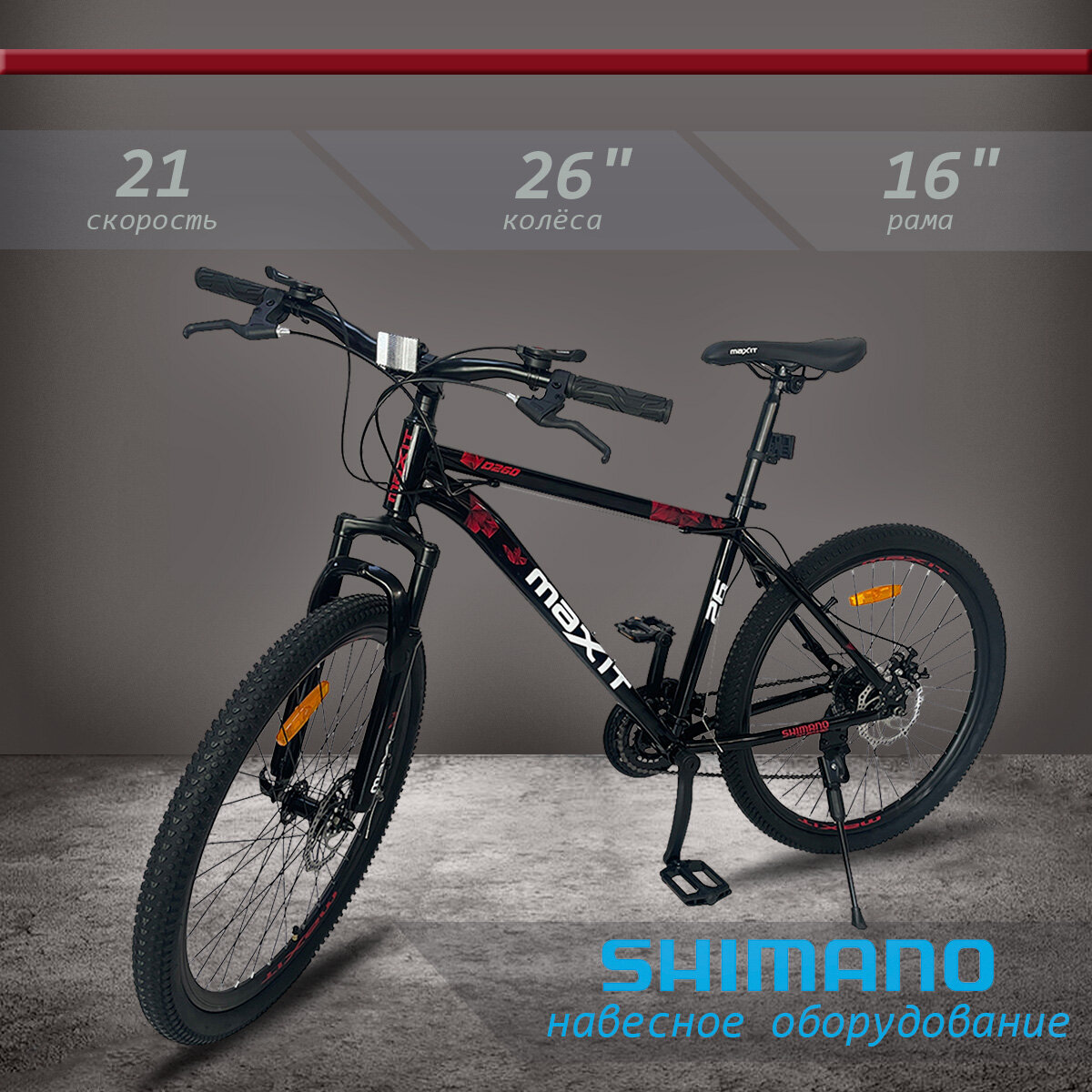 Велосипед горный MAXIT D260-BR, 21 скорость, черный/красный информация: