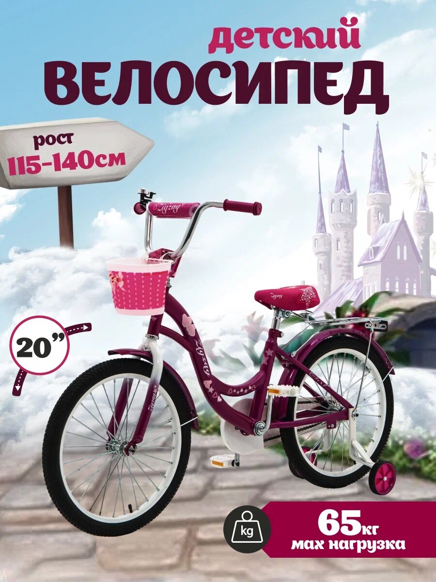 Отзывы на Велосипед детский двухколесный 20" ZIGZAG GIRL малиновый для детей от 6 до 9 лет на рост 115-140см (требует финальной сборки)