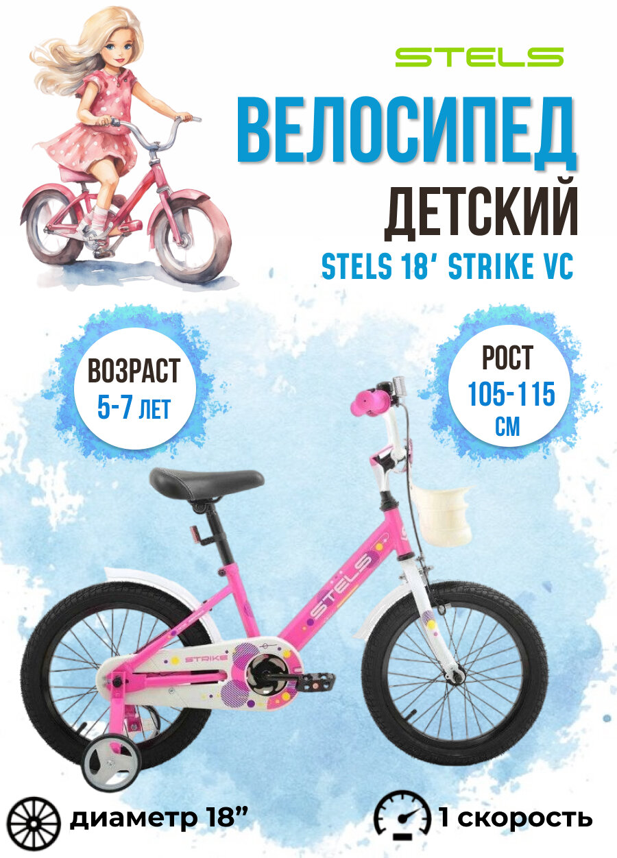 Велосипед детский Stels 18" Strike VC 2023 года розовый информация: