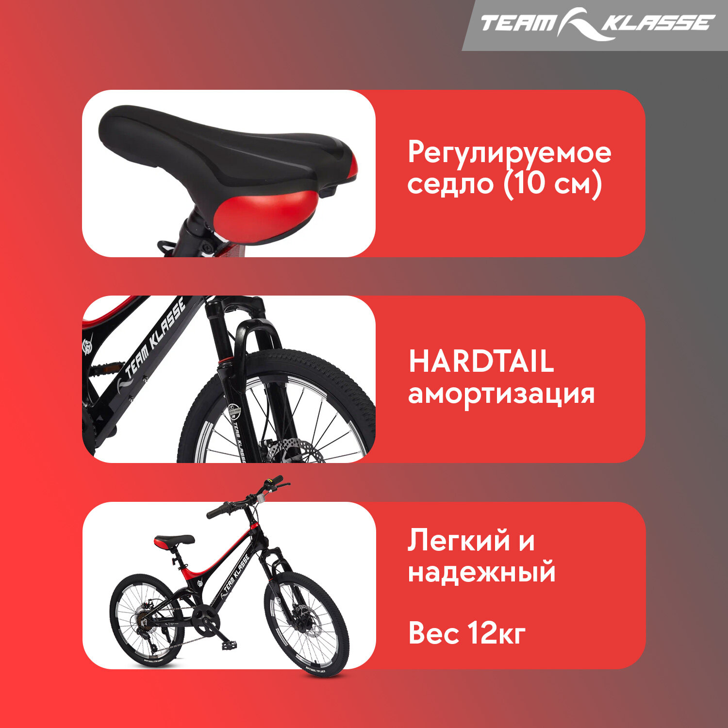 Отзывы на Горный детский велосипед Team Klasse F-3-B, черный, красный, диаметр колес 20 дюймов