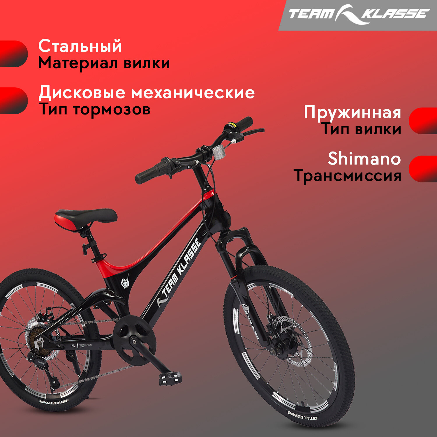 Горный детский велосипед Team Klasse F-3-B, черный, красный, диаметр колес 20 дюймов информация: