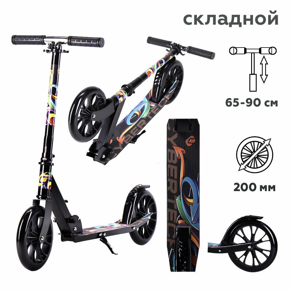 Самокат двухколесный складной для девочки для мальчика детский COMIRON CYBERYECH, колеса PU 200 мм., дека 520х100 мм., подножка, складной механизм / 1 шт. информация: