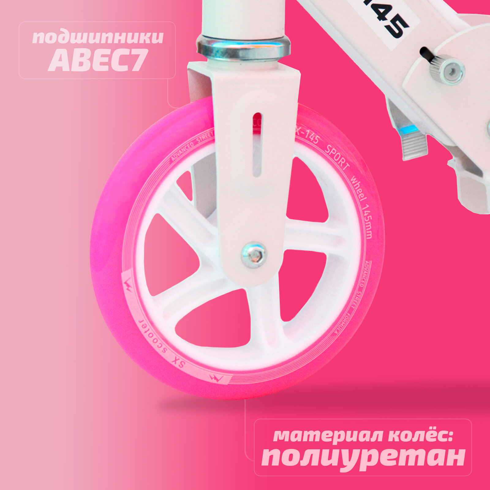 Самокат двухколесный детский SX Scooter, 145мм, сталь, складной, розовый информация: