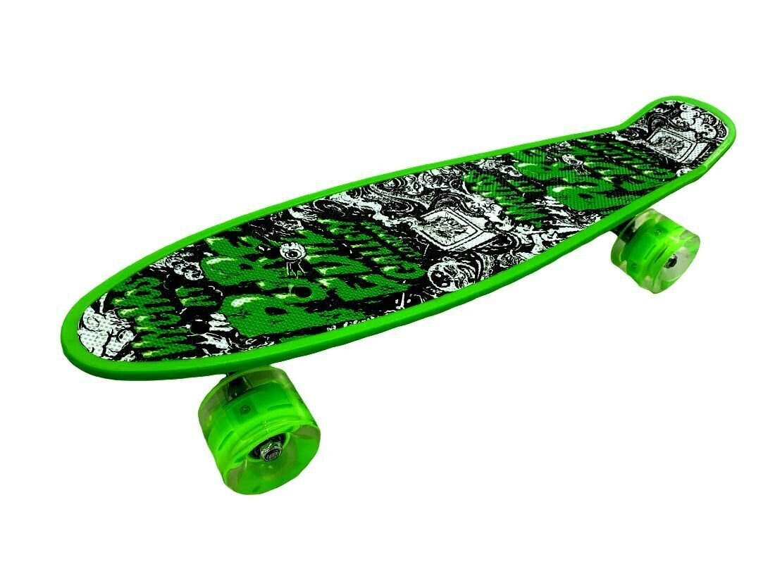 Пенниборд Penny board скейтборд детский 55x15 см, высокопрочный пластик, колеса светящиеся, салатовый информация: