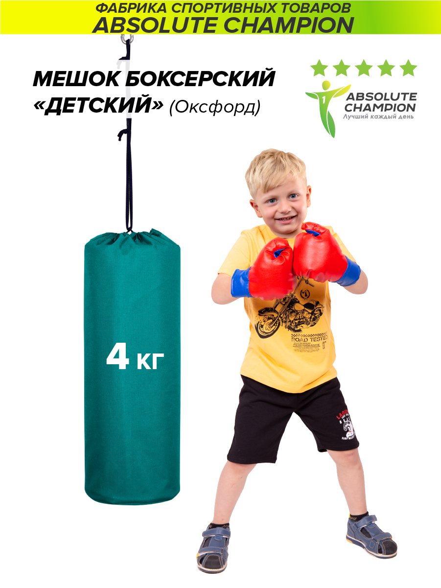 10 цен на Груша боксерская детская, мешок для бокса спорт 4 кг бирюзовый Absolute Champion