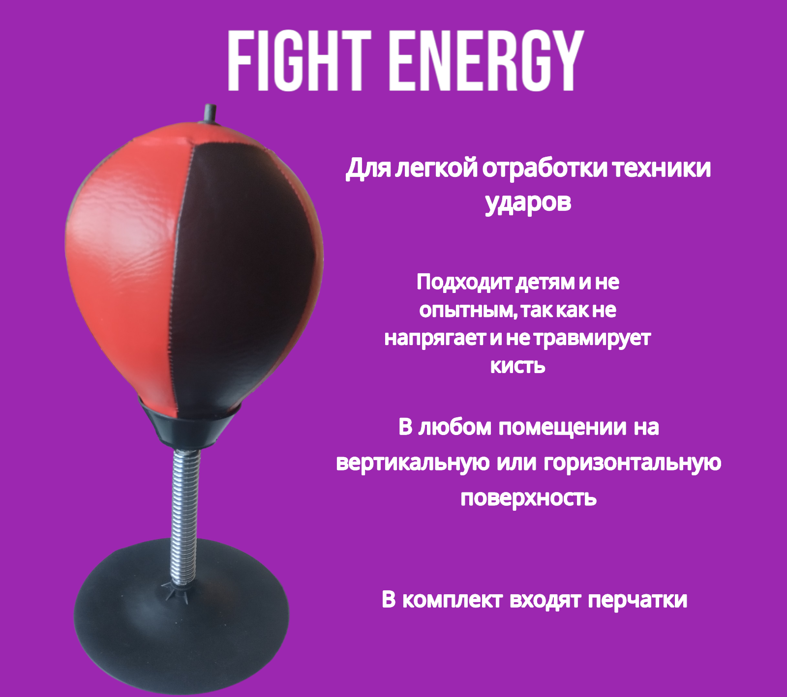 Боксерская груша детская "FIGHT ENERGY" на присоске. Боксёрская груша на присоске для отработки техники ударов рук информация: