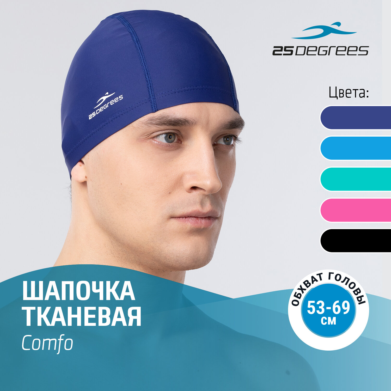 Шапочка для плавания тканевая 25DEGREES Comfo , цвет голубой 331 ₽
