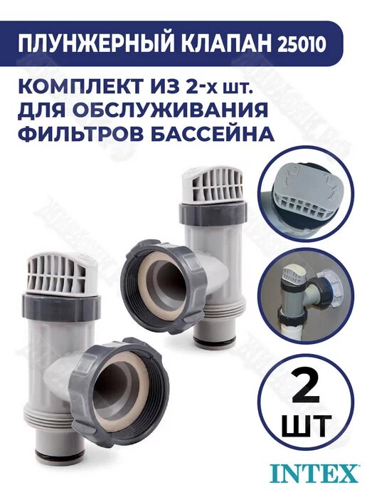 10 цен на Комплект из двух плунжерных клапанов 38 мм 25010 для бассейна Intex