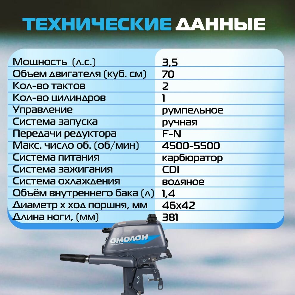 Лодочный мотор омолон MP 3.5 AMHS, 2х тактный, бензиновый информация: