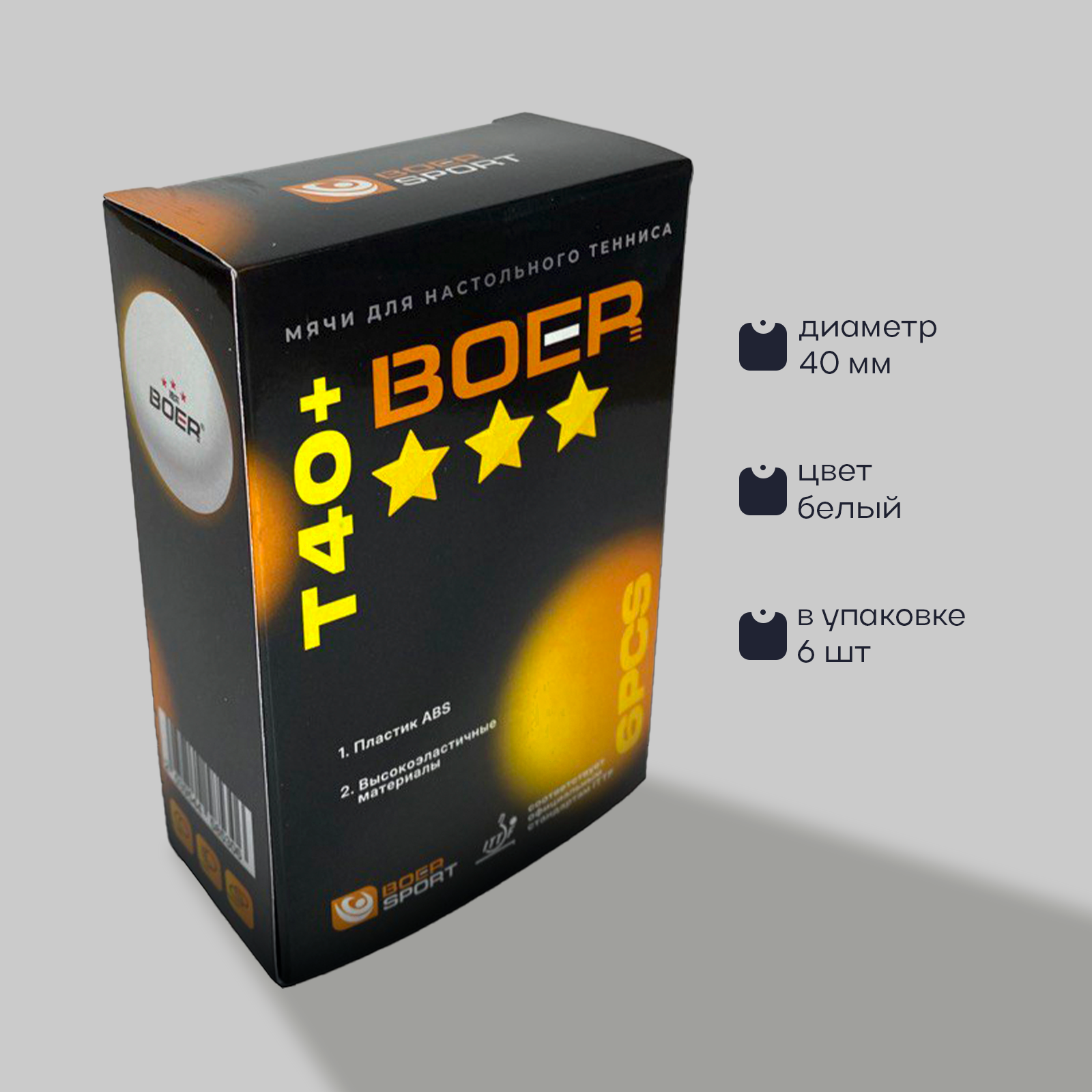 Мячи для настольного тенниса, 6 шт. Набор мячиков для пинг-понга, 40+мм. Шарики для пинг-понга, белый Boer информация: