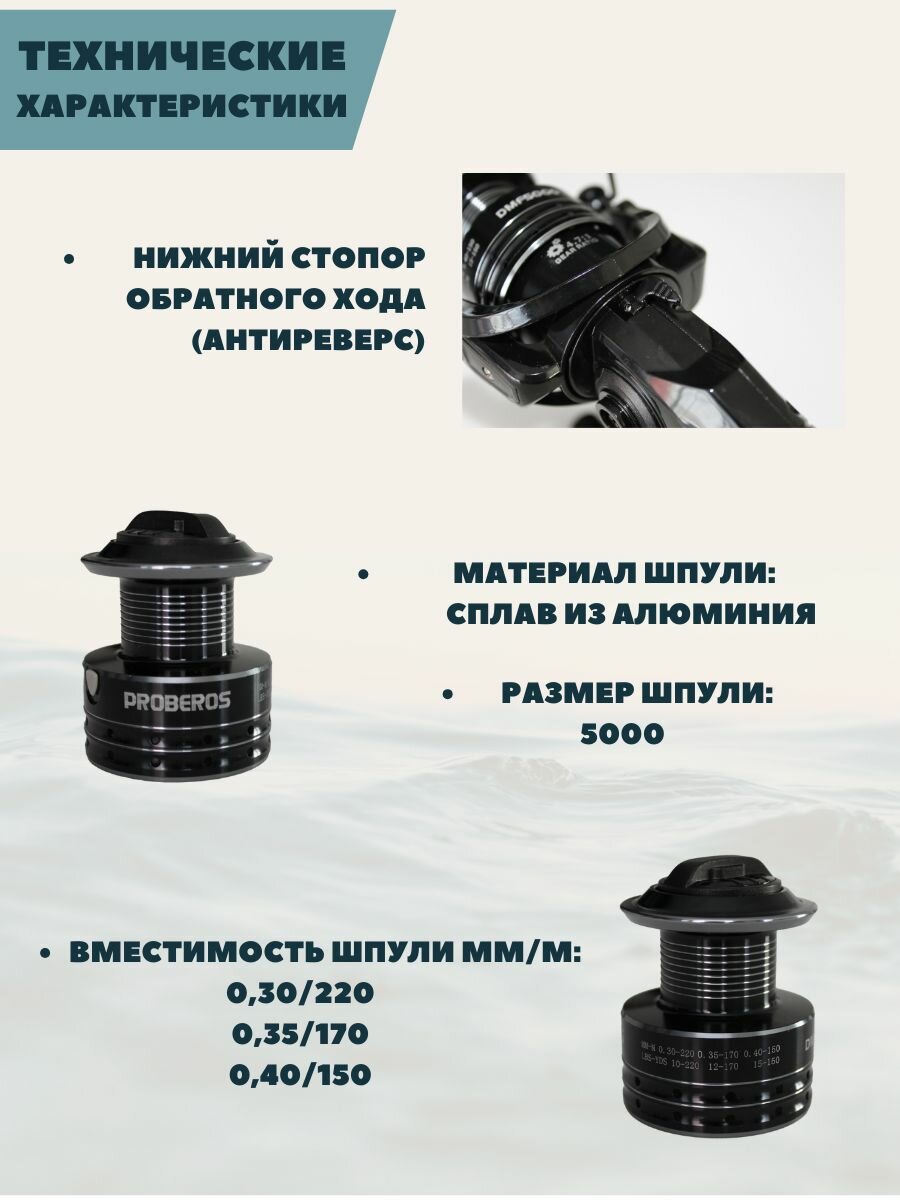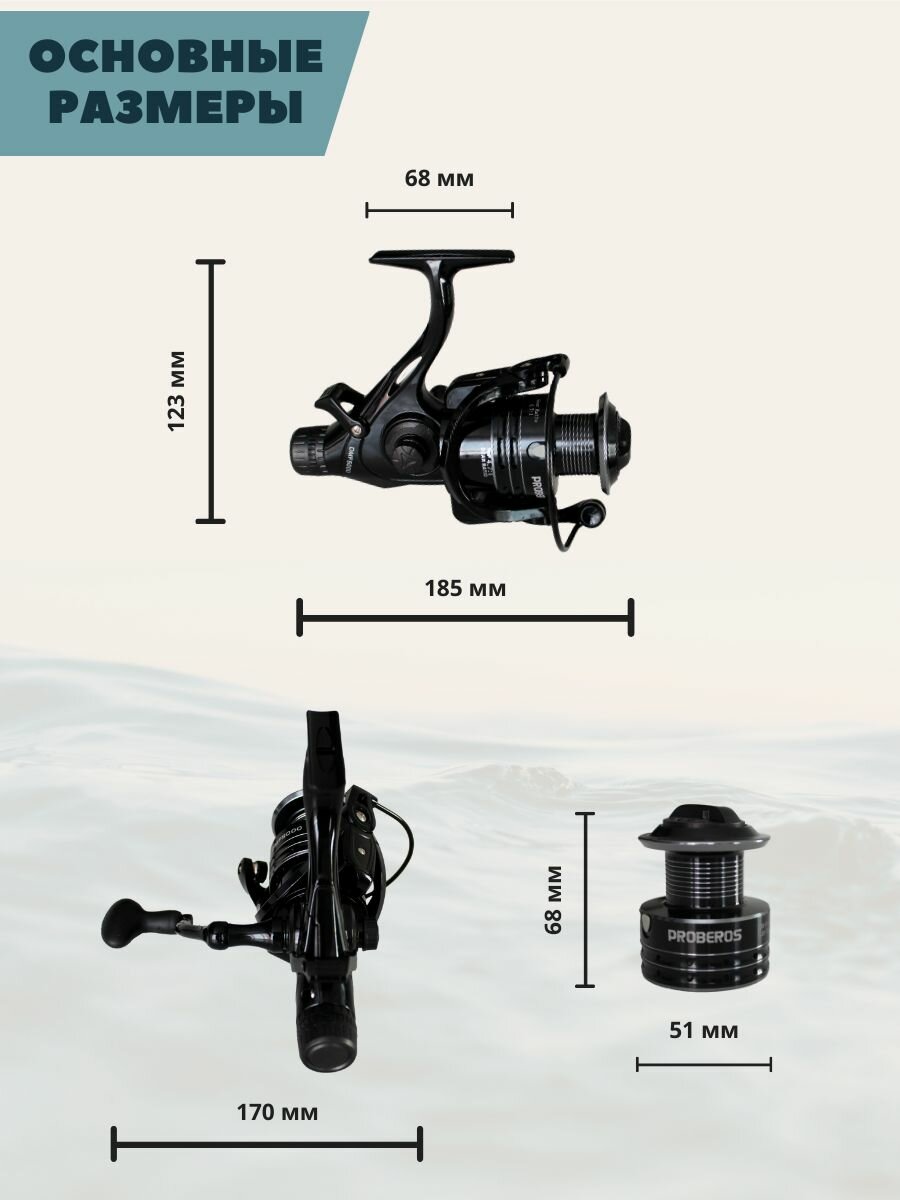 Катушка рыболовная безынерционная Proberos 5000 с байтранером с передним фрикционом