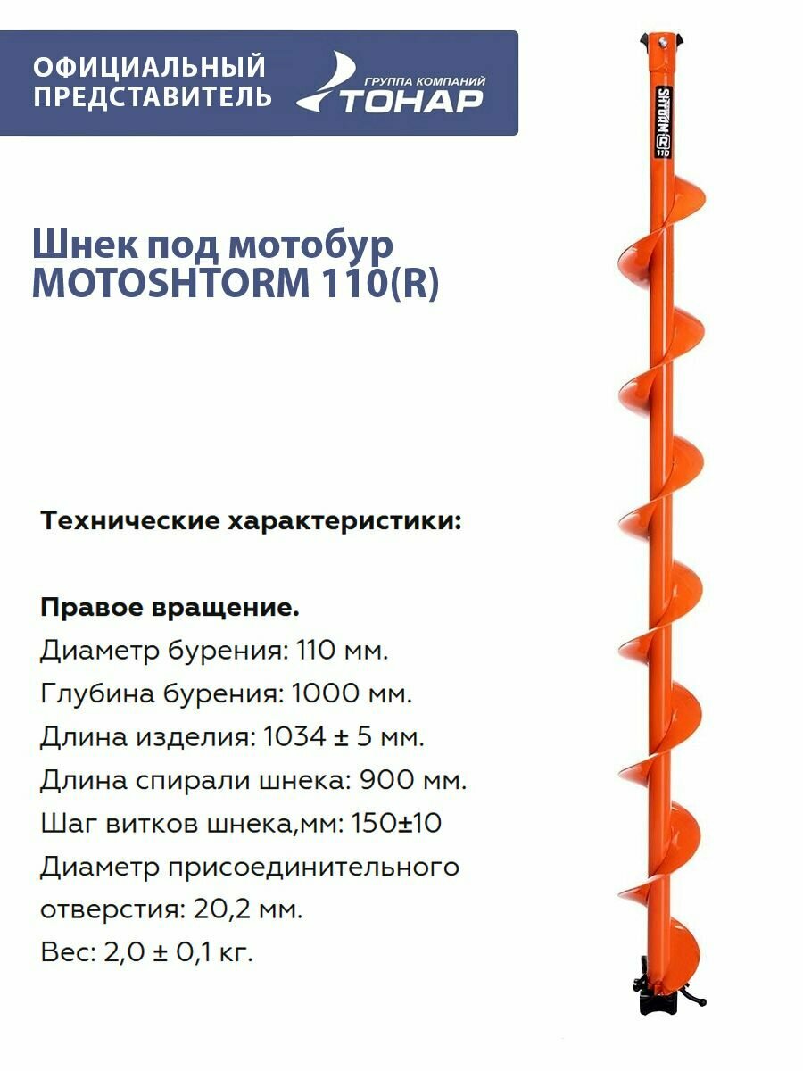 Шнек под мотобур MOTOSHTORM 110(R) правое вращение Тонар информация: