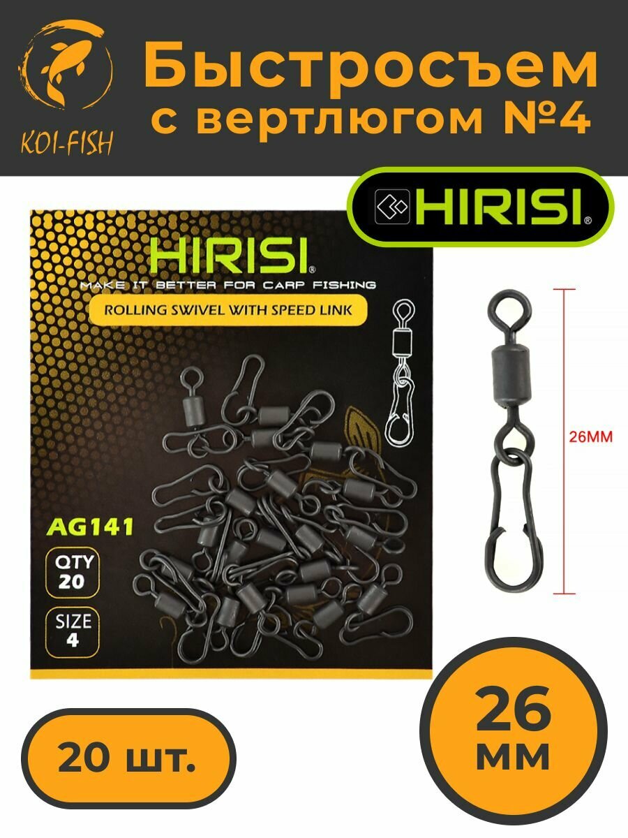 Быстросъем с вертлюгом №4 (AG141) 20шт. 26мм коннектор рыболовный для поводков для карповой ловли информация: