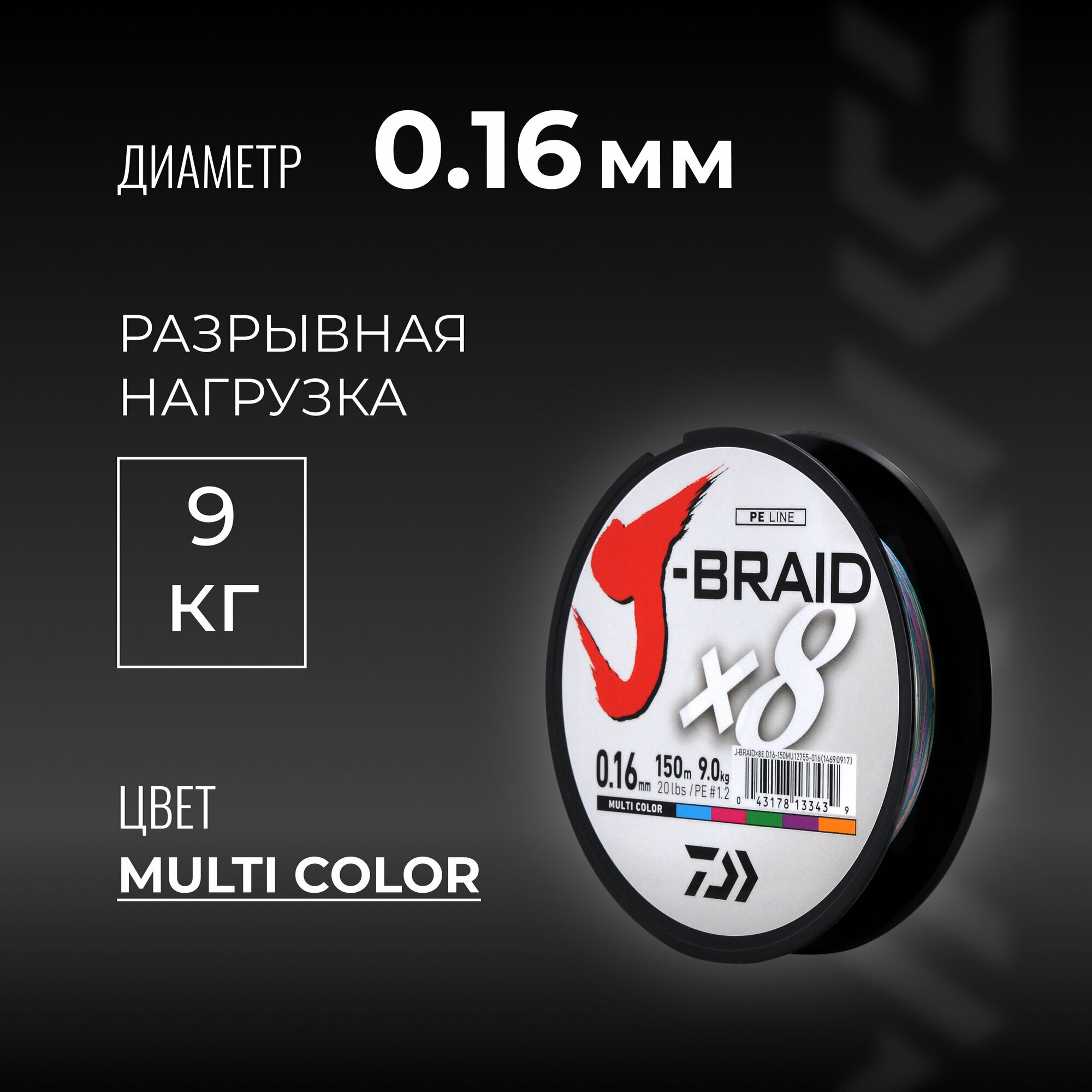 Шнур DAIWA J-Braid x8 150м Multicolor 0,16мм 9кг информация: