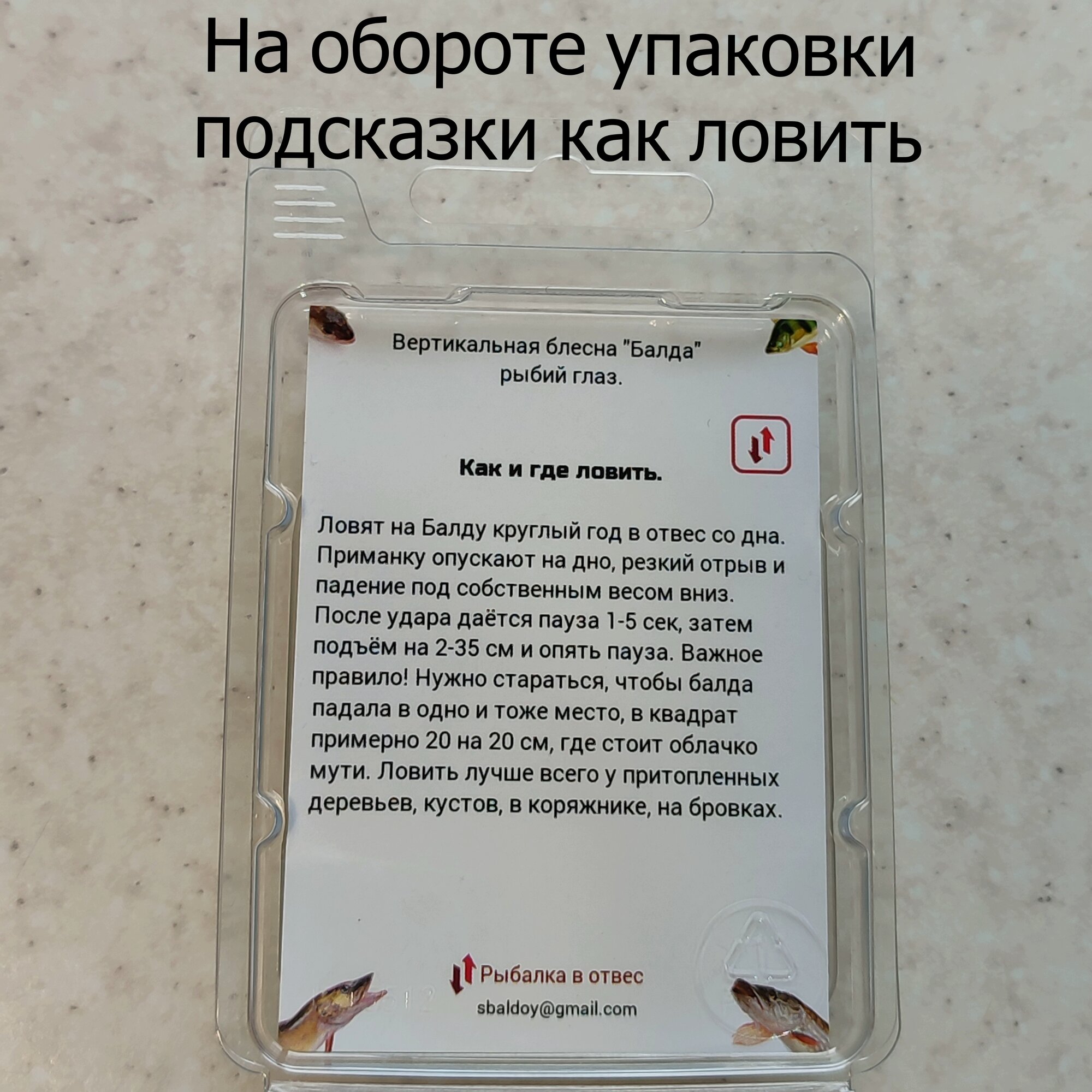 | Дополнительная информация | Всесезонная блесна-приманка с уникальным покрытием"балда" рыбий-глаз, вес приманки 20 грамм. |