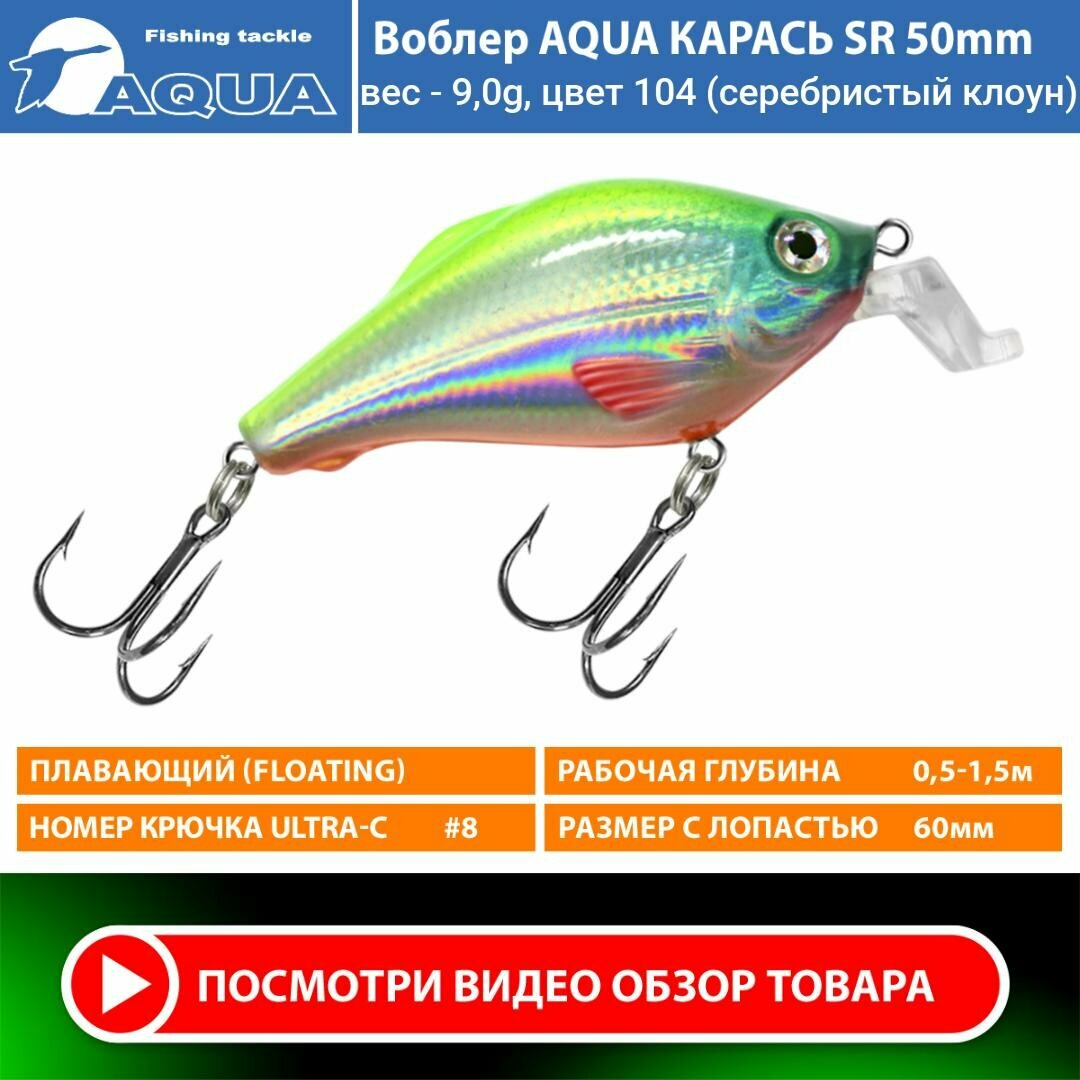 10 цен на Воблер для рыбалки плавающий AQUA Карась SR 50mm 9g заглубление от 0.5 до 1.5m цвет 104