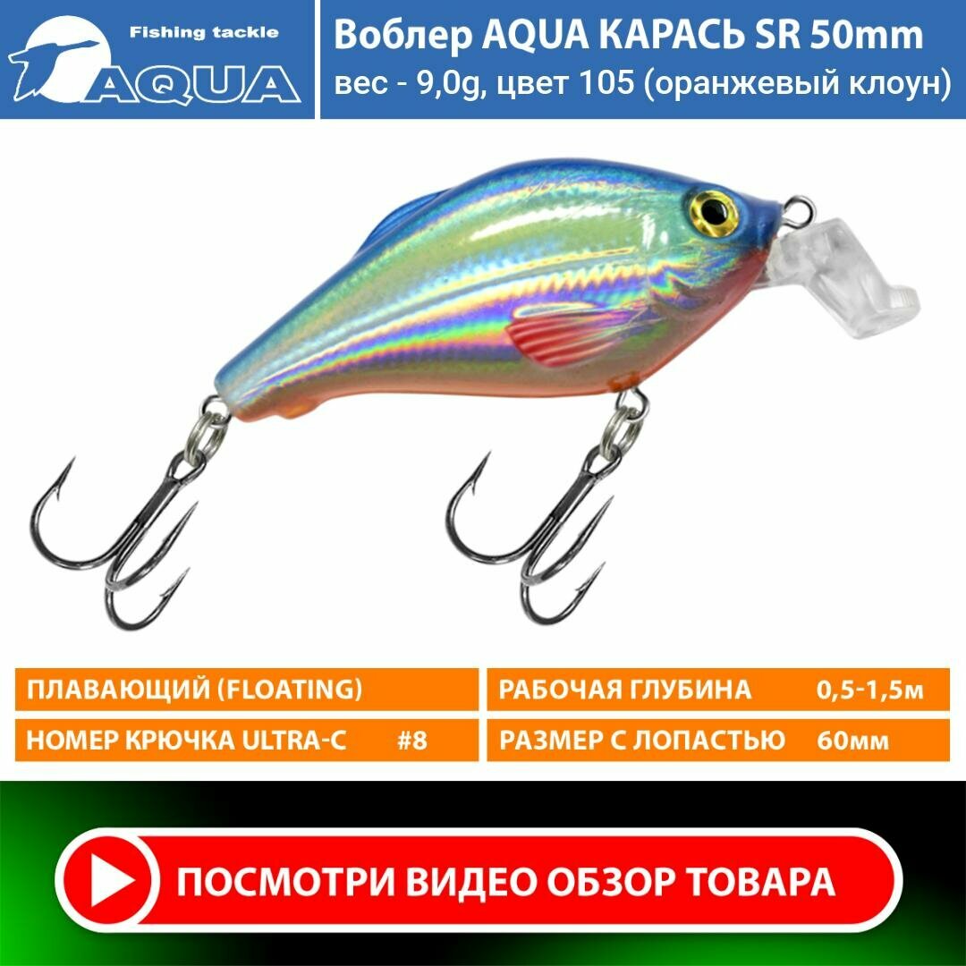10 цен на Воблер для рыбалки плавающий AQUA Карась SR 50mm 9g заглубление от 0.5 до 1.5m цвет 105