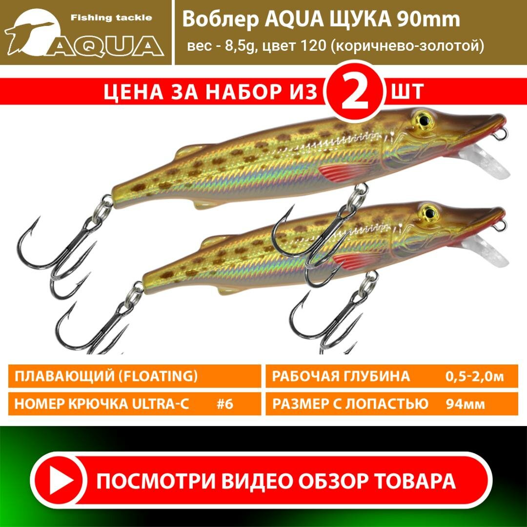 10 цен на Воблер для рыбалки плавающий AQUA Щука 90mm 8,5g заглубление от 0,5 до 2m цвет 120 2шт