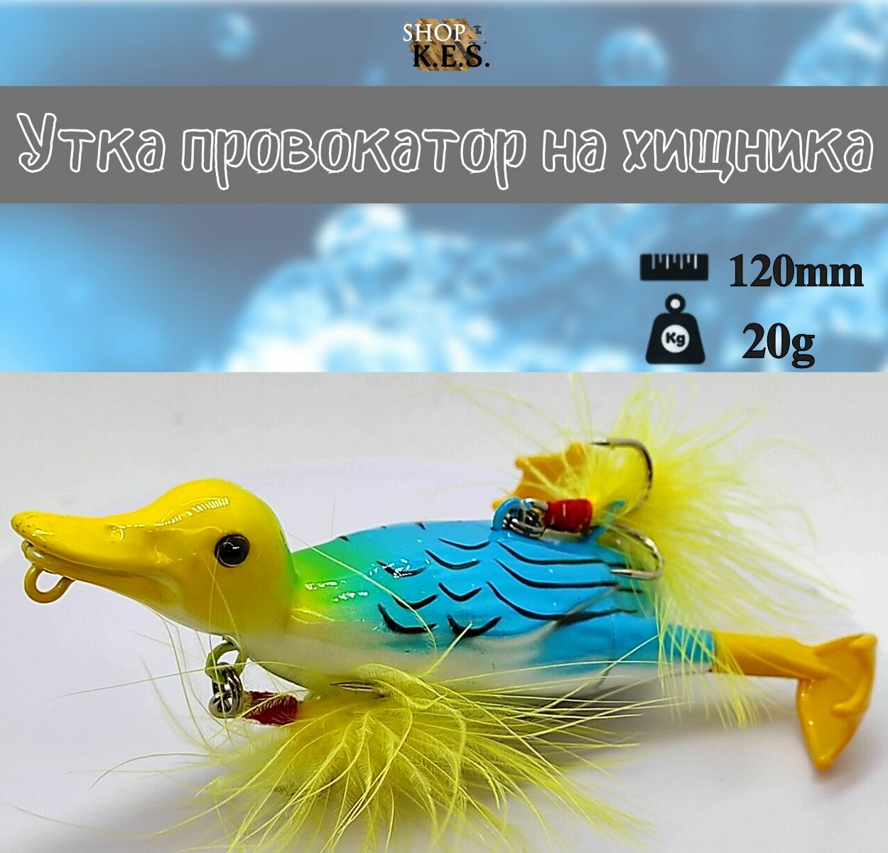 Утка провокатор на хищника / Поверхностная приманка для рыбалки / Блесна рыболовная незацепляйка для ловли щуки / Поппер информация: