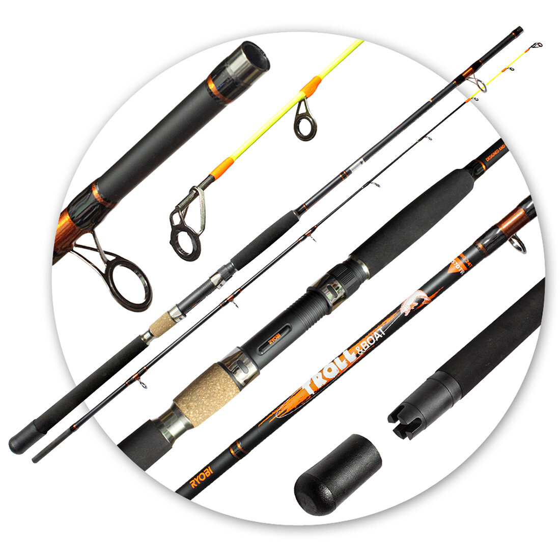 10 цен на Спиннинг штекерный для троллинга Ryobi Troll&Boat, длина 2,10 метра, тест 15-40lb