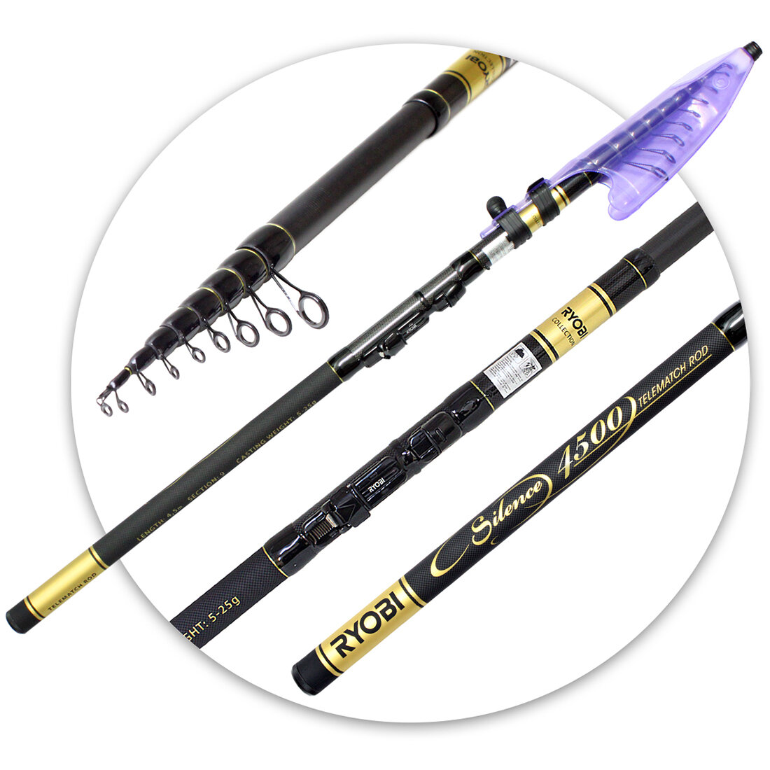 10 цен на Удилище телескопическое Ryobi Silence, длина 4,50 метра, тест 5-25 грамм