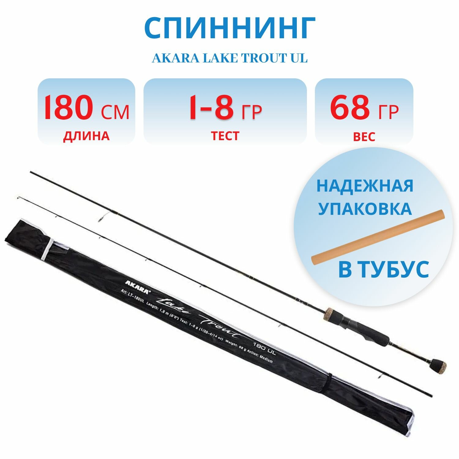 Отзывы на Спиннинг штекерный угольный 2 колена Akara Lake Trout UL (1-8) 1,8м