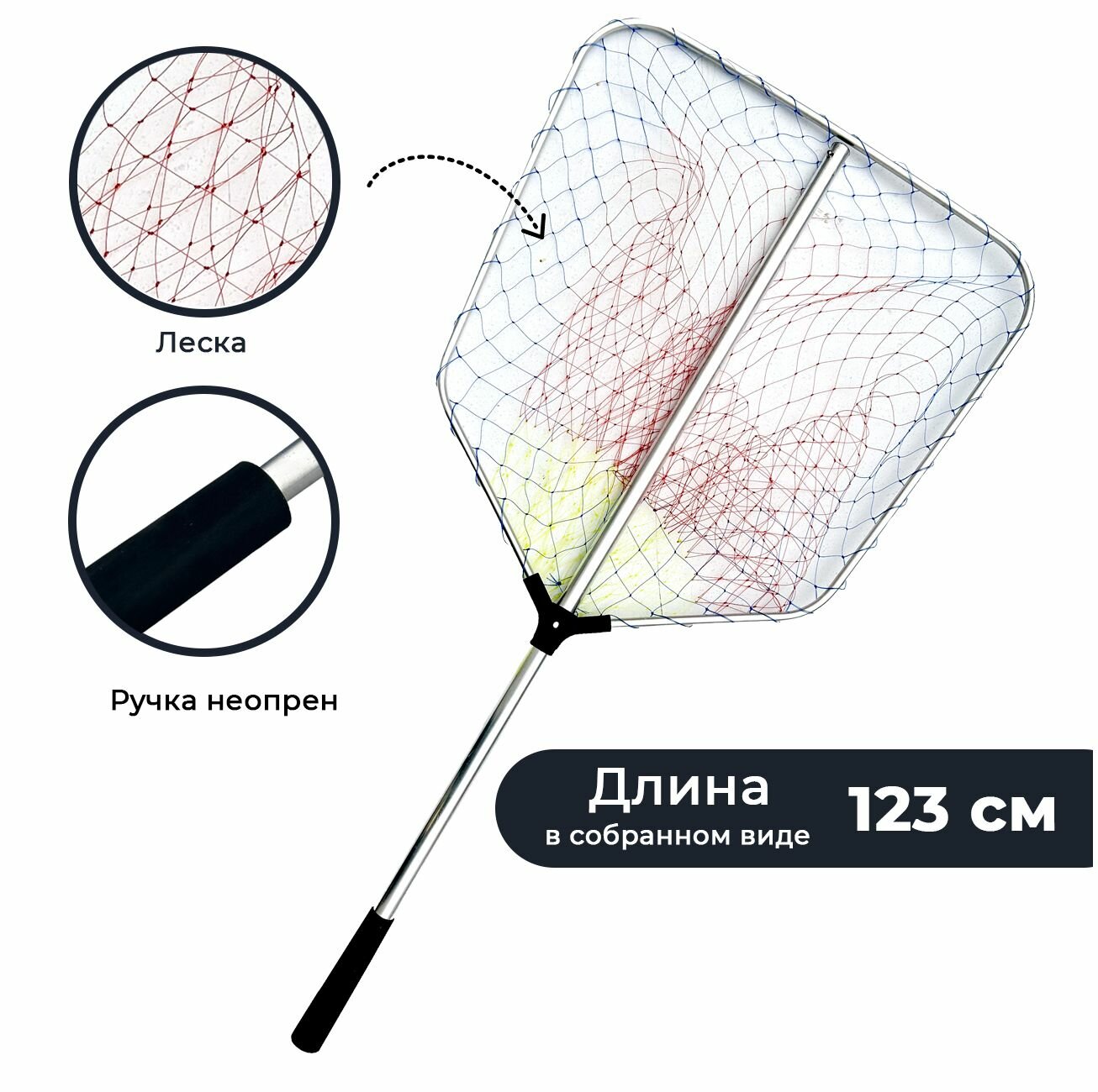 Подсачек рыболовный раздвижной / Подсак для рыбалки квадратный алюминиевый леска информация: