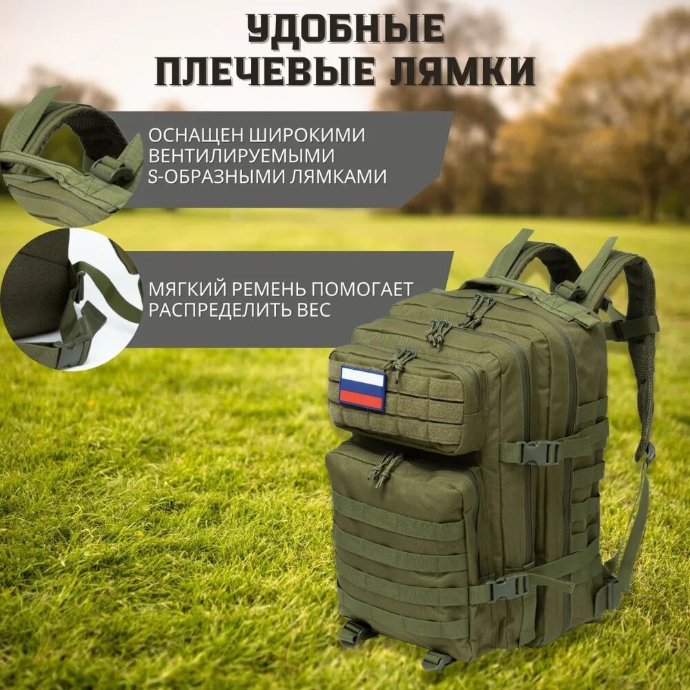 Отзывы на Рюкзак тактический, Туристический, 50 литров, Хаки, Мультитул/сумка-аптечка + подарок внутри.