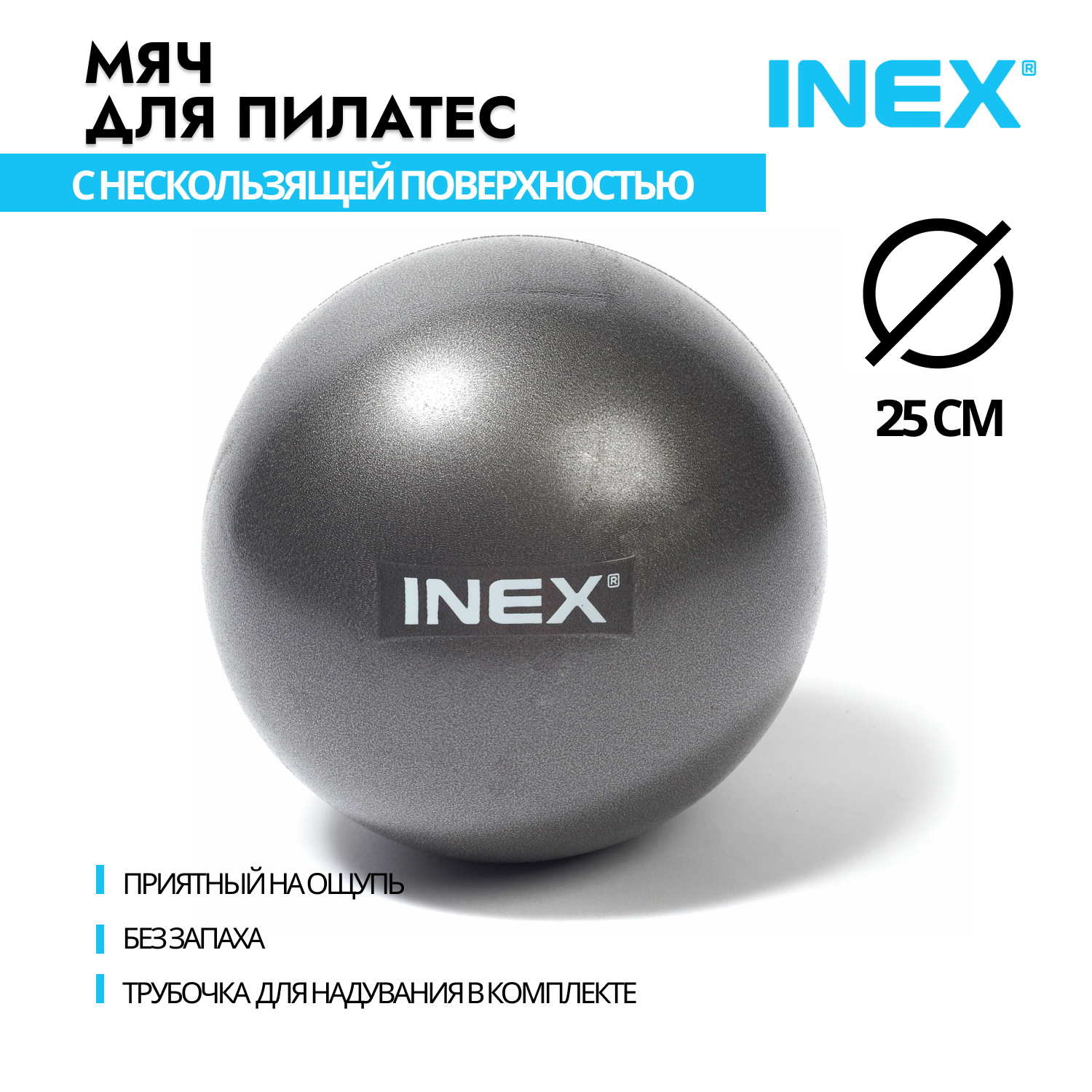 Мяч для пилатеса INEX Pilates Foam Ball, диаметр 25 см, серый информация: