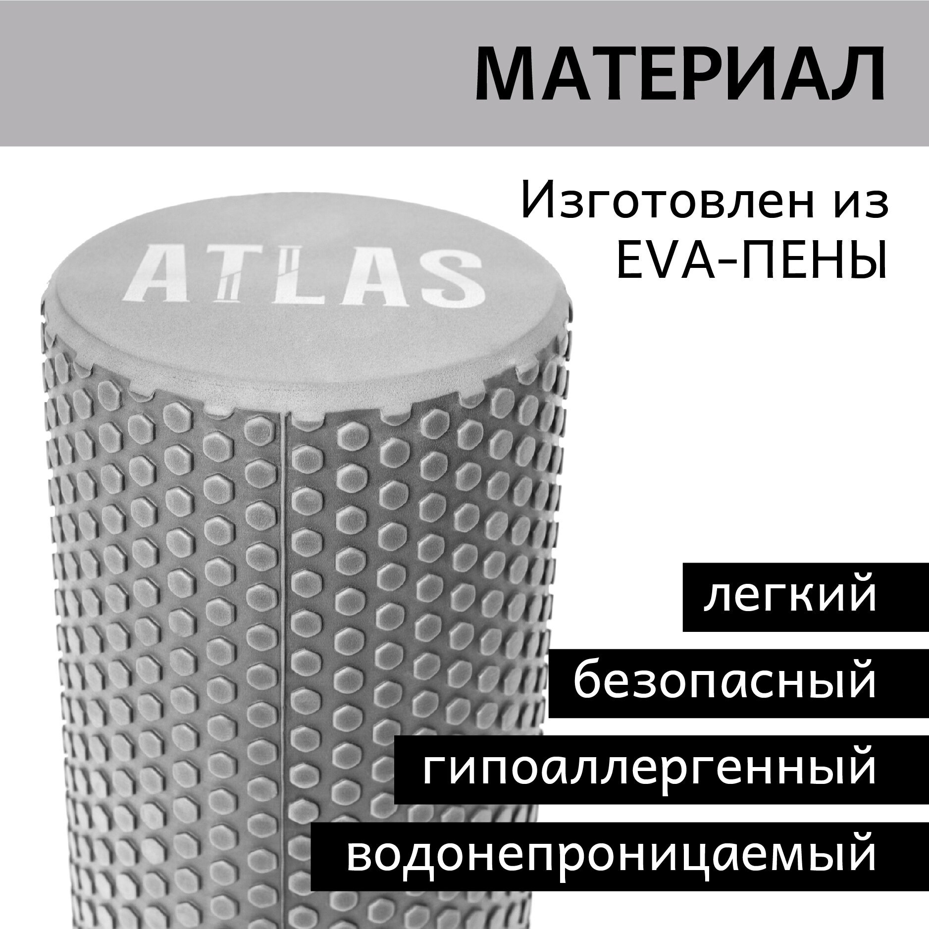 Ролик для фитнеса ATLAS, 45х15 см, EVA, серый, МФР массажный валик для спины, ролл для йоги и пилатеса информация: