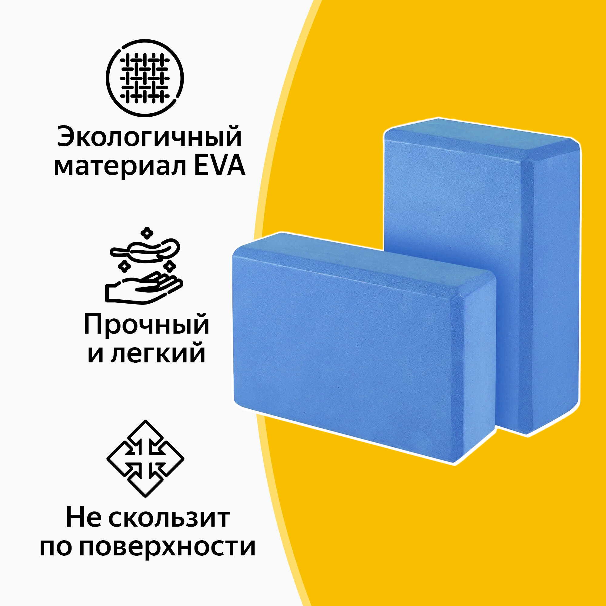Блок для йоги, EVA, голубой, 23х15х7.5 см, набор из 2 шт информация: