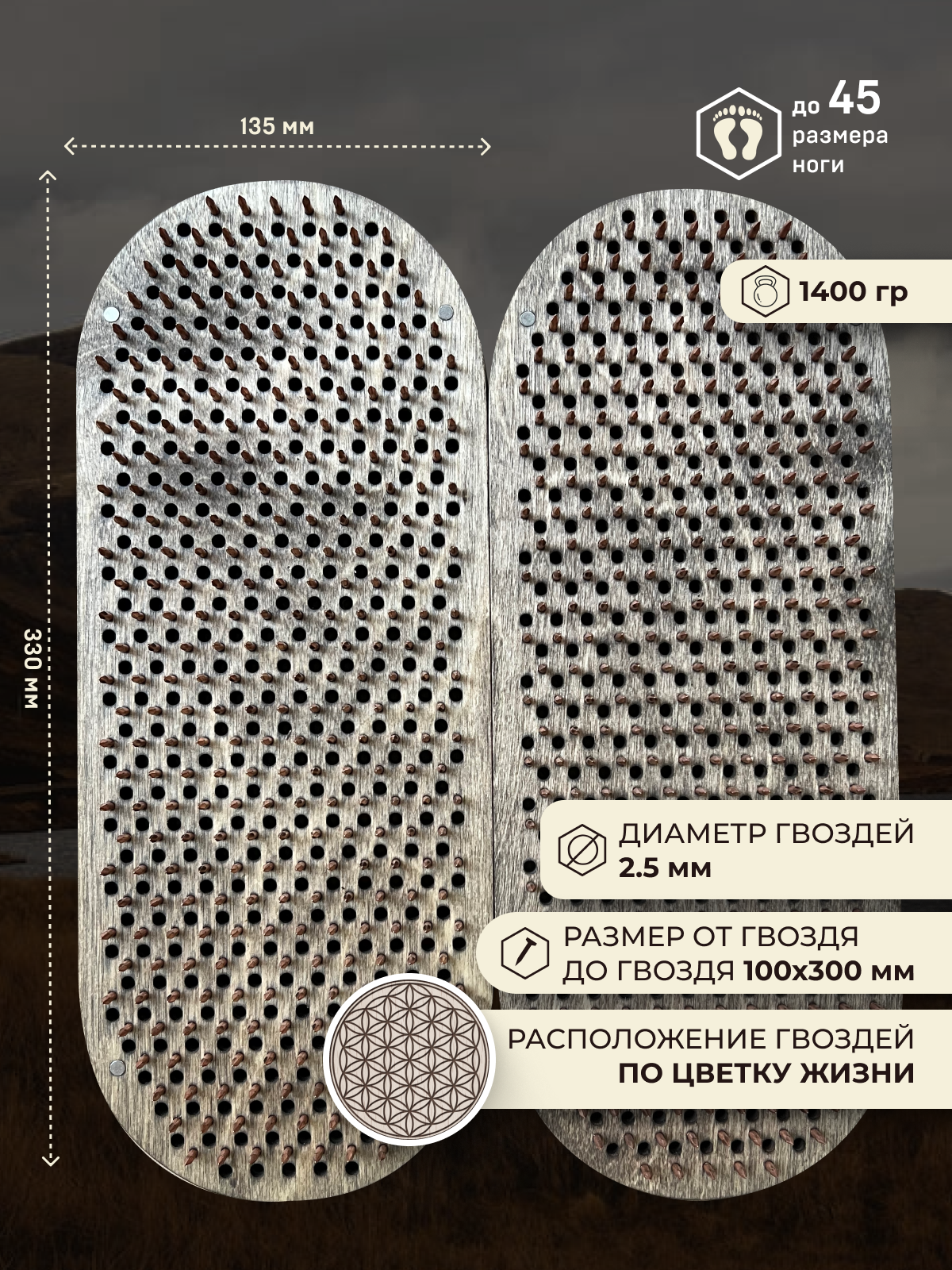 Доска Садху / Доска с гвоздями / Доска для Йоги / растения надпись - 1395, черная