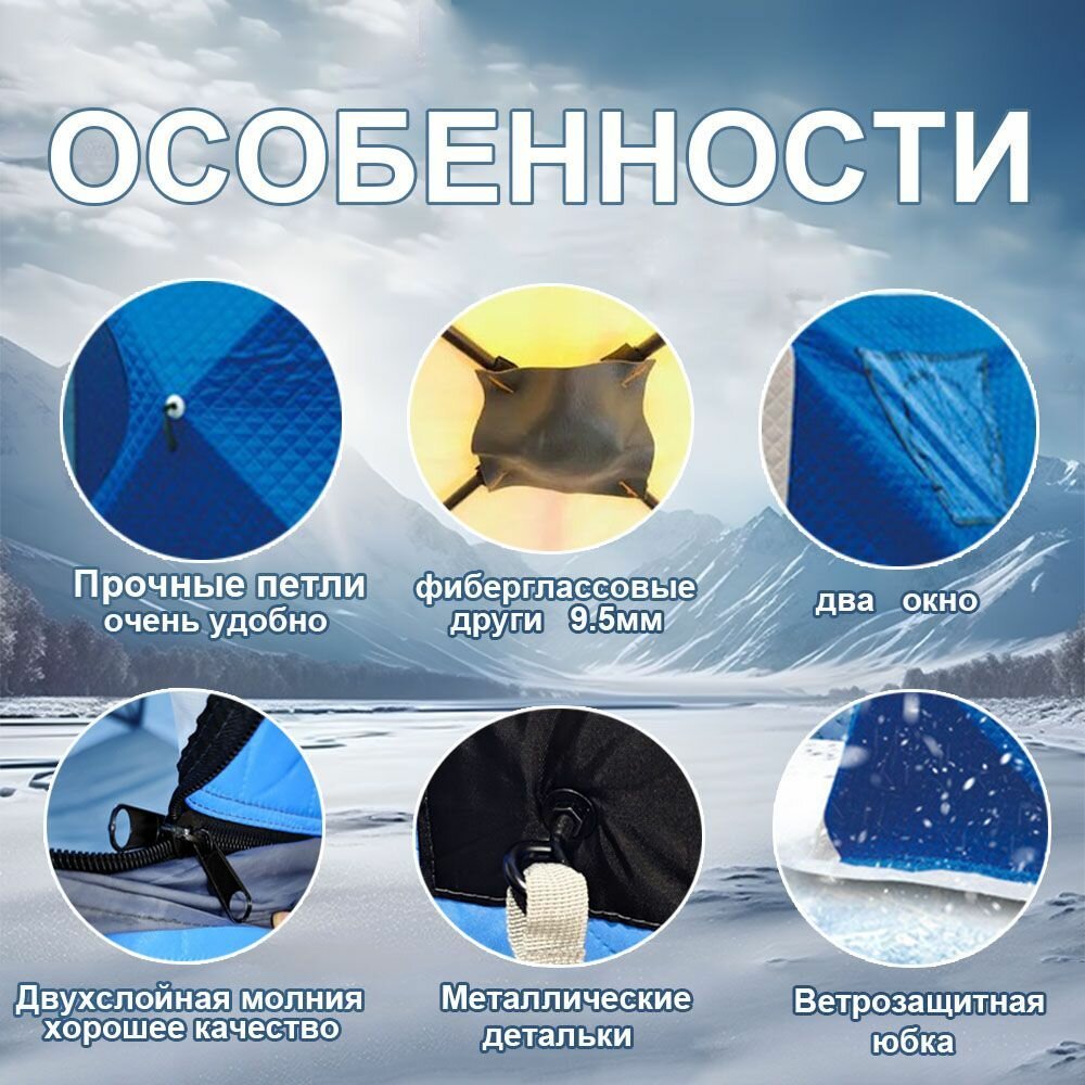 Отзывы на Палатка-куб для зимней рыбалки зимняя трехслойная, туристическая, трехместная200*400*215