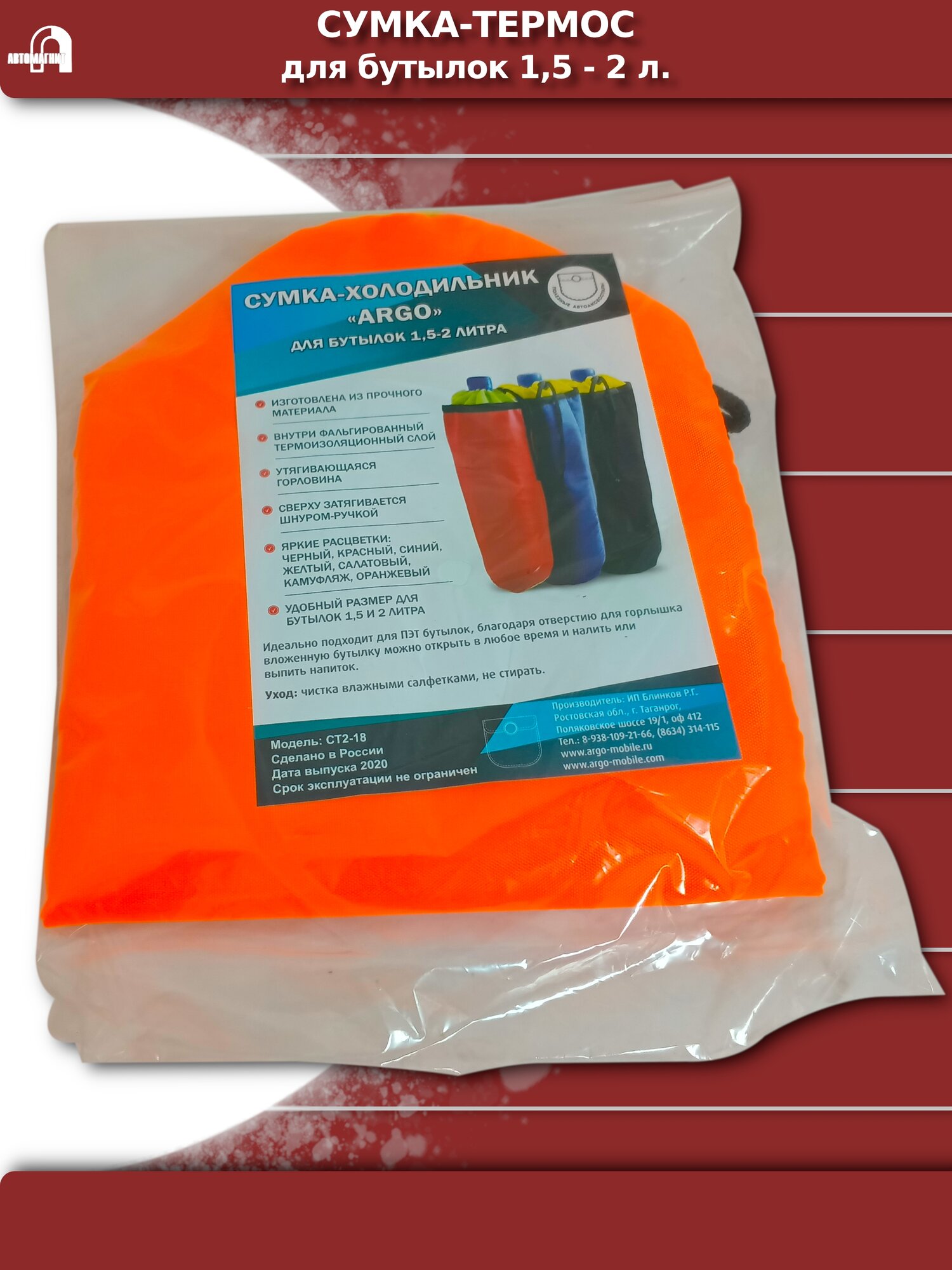 Сумка-термос для бутылок 1.5 - 2 л. оранжевая информация: