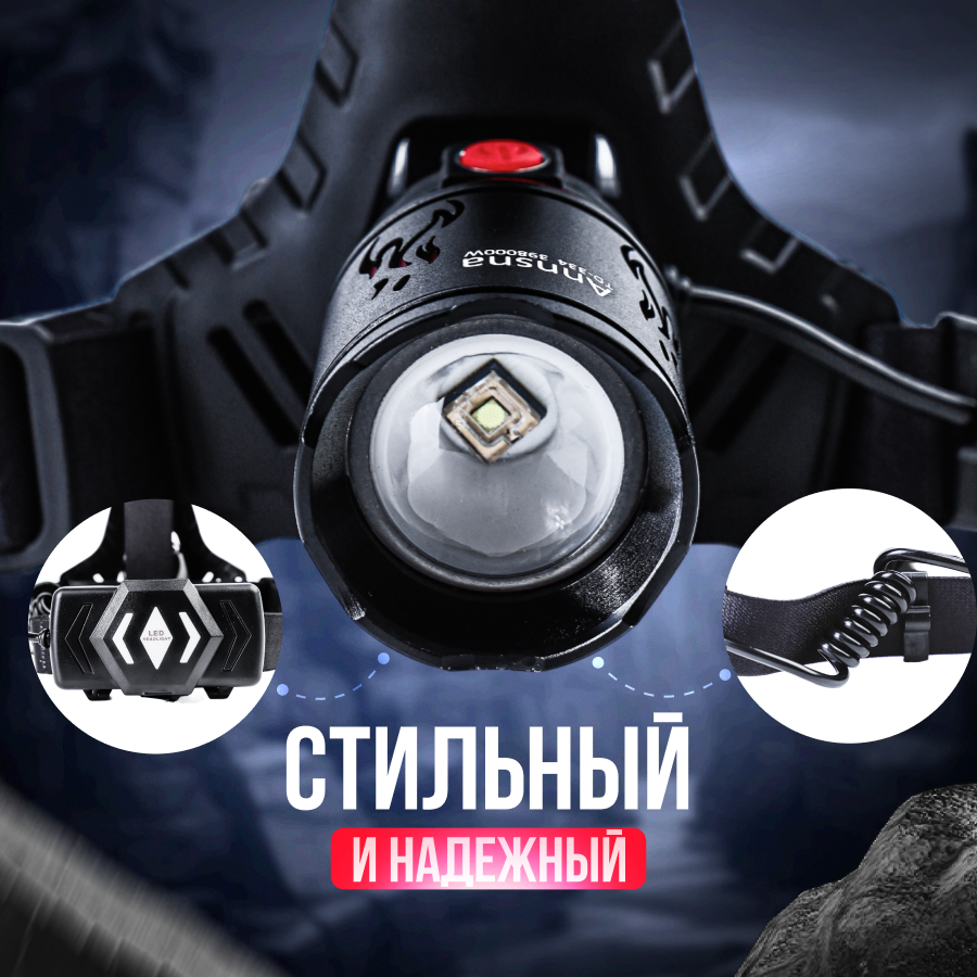 10 цен на Фонарик налобный с мощнейшим светодиодом тактический