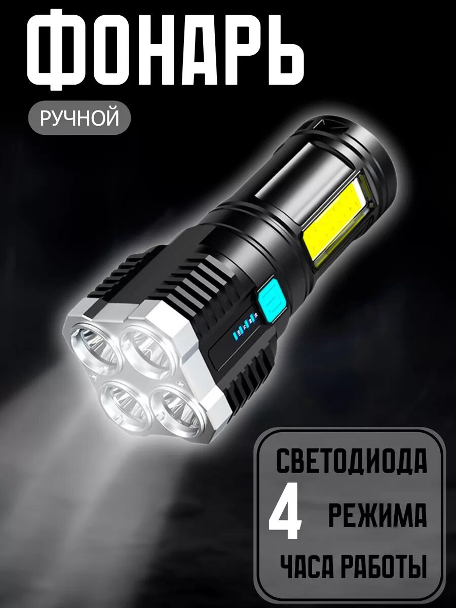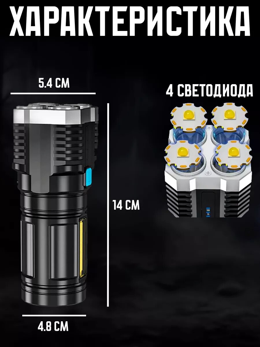 Сверхяркий фонарик светодиодный аккумуляторный 4 режима информация: