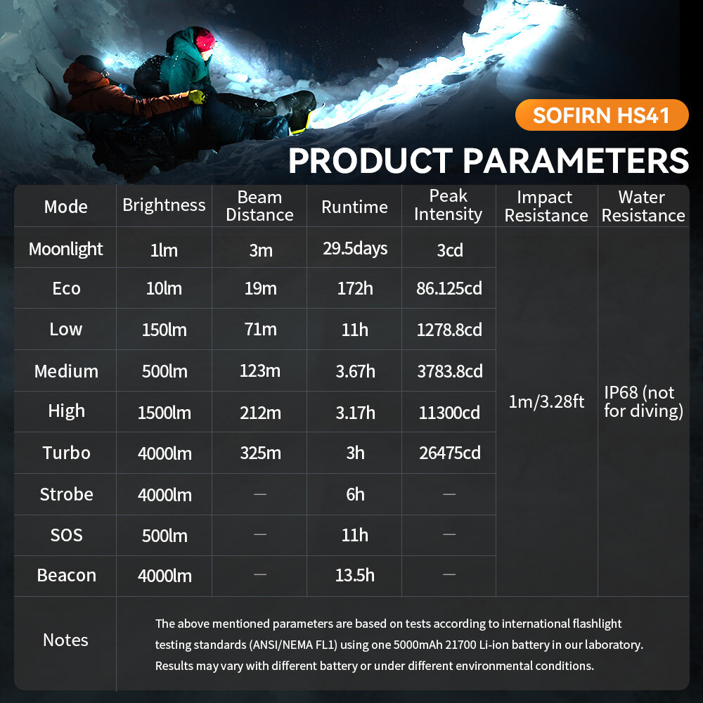 SOFIRN HS41 Налобный фонарь 4000lm 21700 USB C перезаряжаемый SST20 светодиодный фонарь 6000K информация: