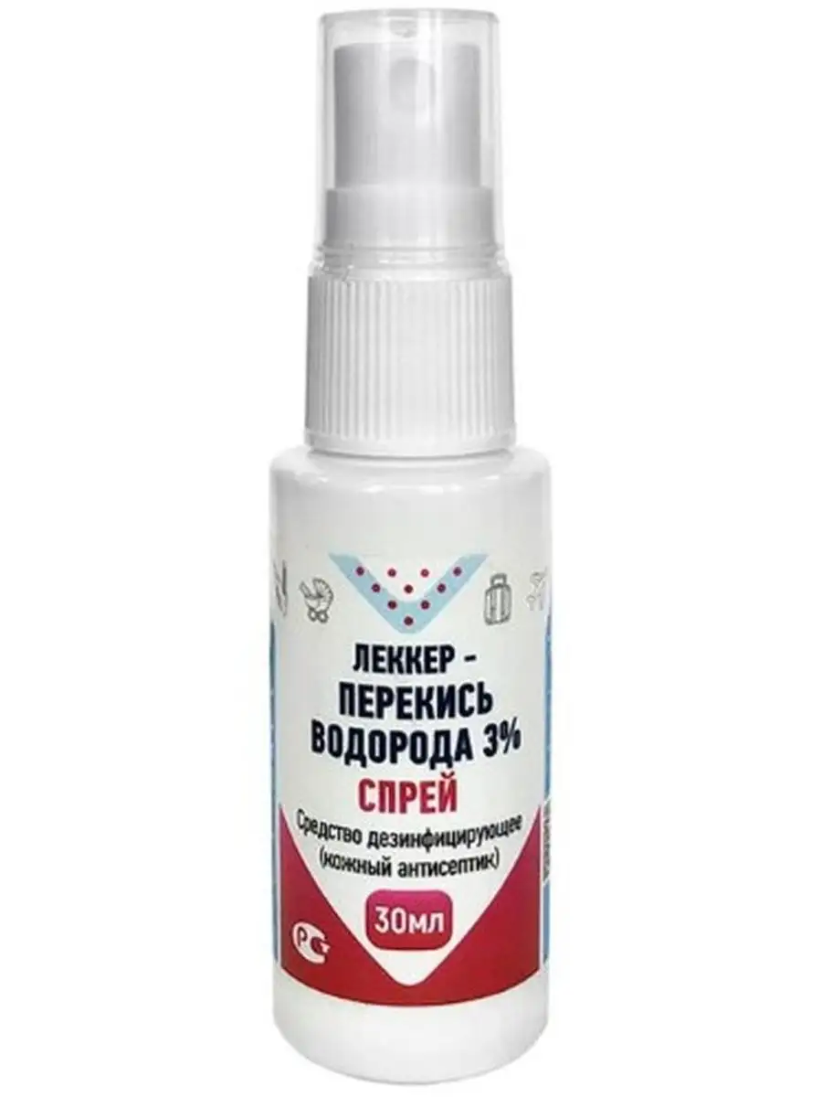 Леккер Кожный антисептик Перекись водорода 3% (спрей), 30 мл, тип крышки: спрей информация: