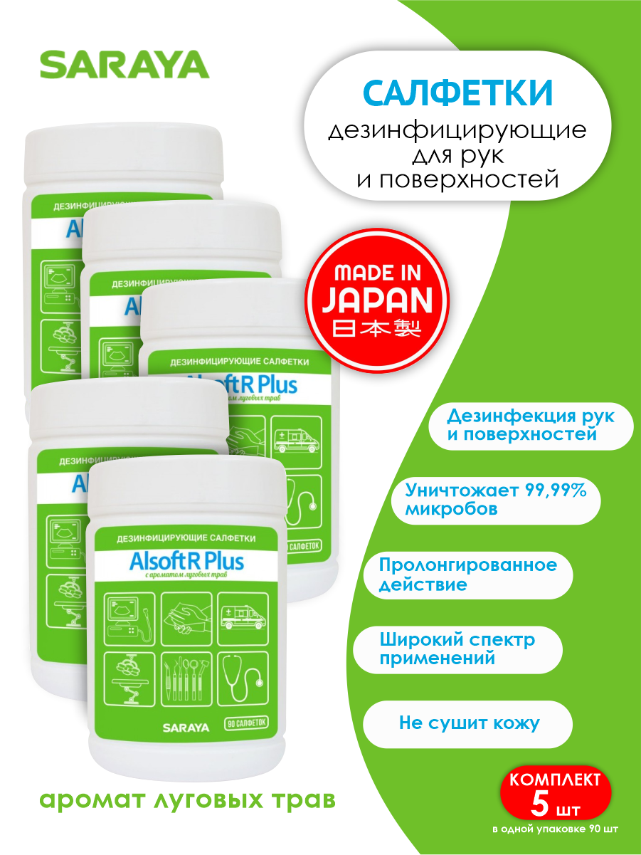 Дезинфицирующие салфетки Alsoft R Plus (Алсофт Р плюс) 90 штук х 5 шт. информация: