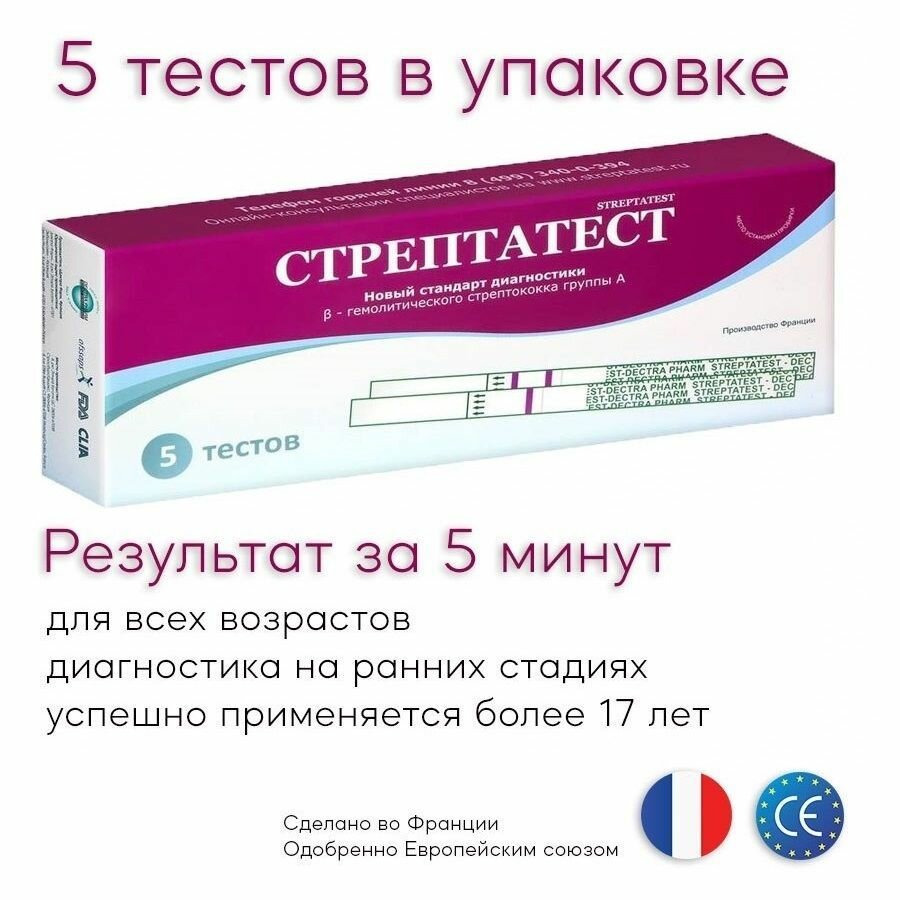 Стрептатест Экспресс-Тест Для Диагностики B-Гемолитического Стрептококка Группы A №5