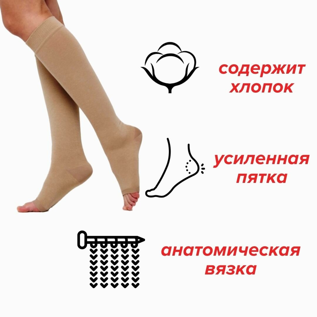 Отзывы на Чулки компрессионные до колена с открытым мыском 1 класс компрессии, кремовый, размер 3