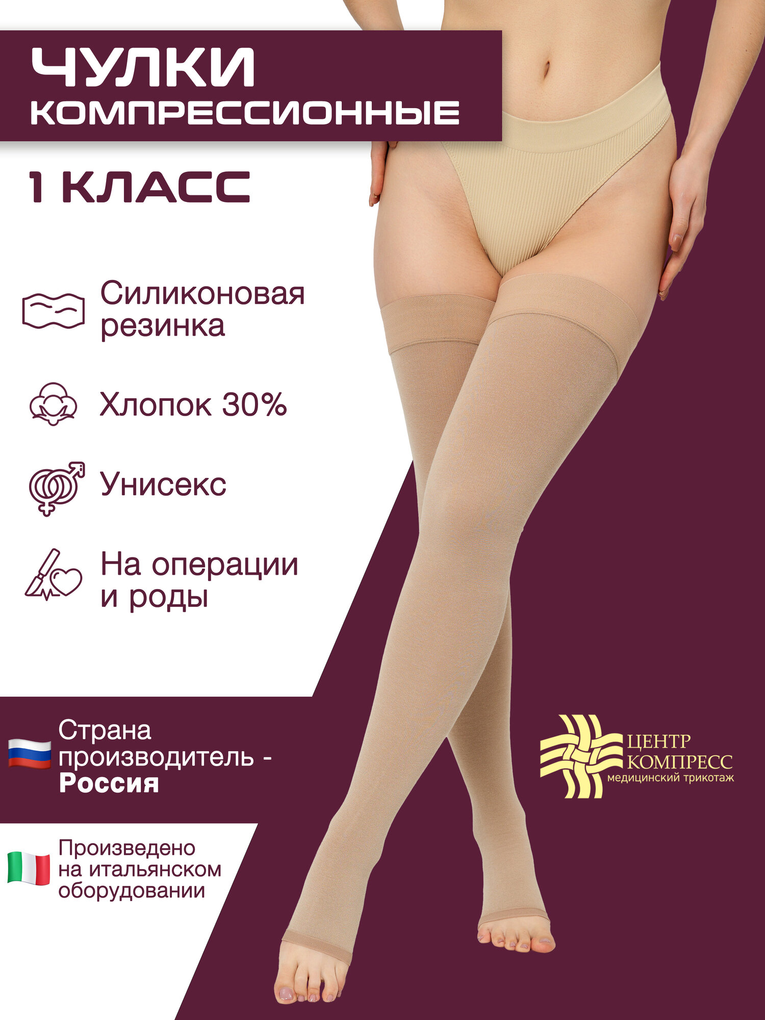 Чулки Центр Компресс компрессионные на силиконовой резинке, кремовые, 1 класс: размер 5 информация: