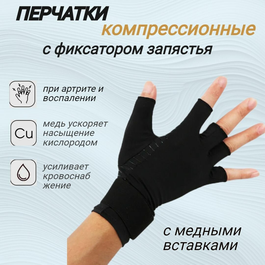 Компрессионные перчатки с ионами меди, с фиксатором запястья, р L информация: