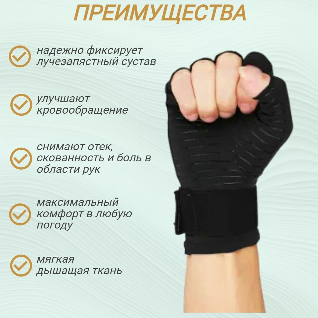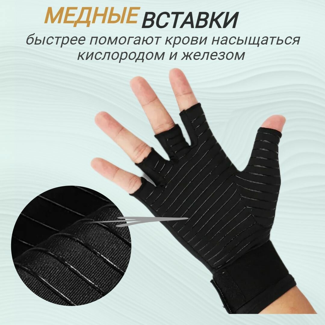10 цен на Компрессионные перчатки с ионами меди, с фиксатором запястья, р L