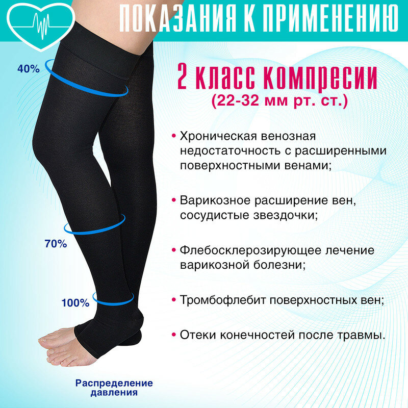 Чулки компрессионные 2 класс, c открытым носком и силиконом (МТ-ЧС2(п)-Ч/4-ЧЕРН), черный 4 информация: