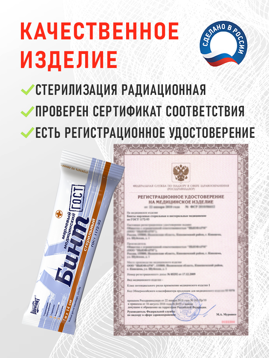 Марлевый Бинт медицинский стерильный Вариант 7 м х 14 см ГОСТ, 4 шт. в наборе информация: